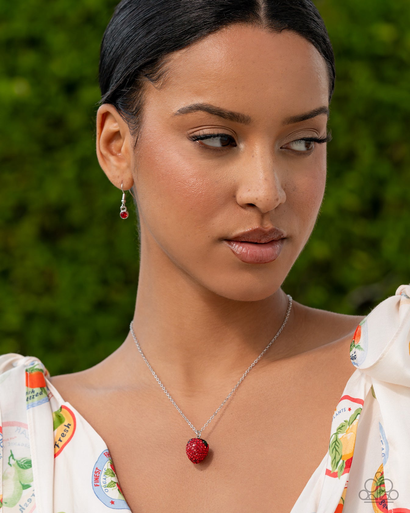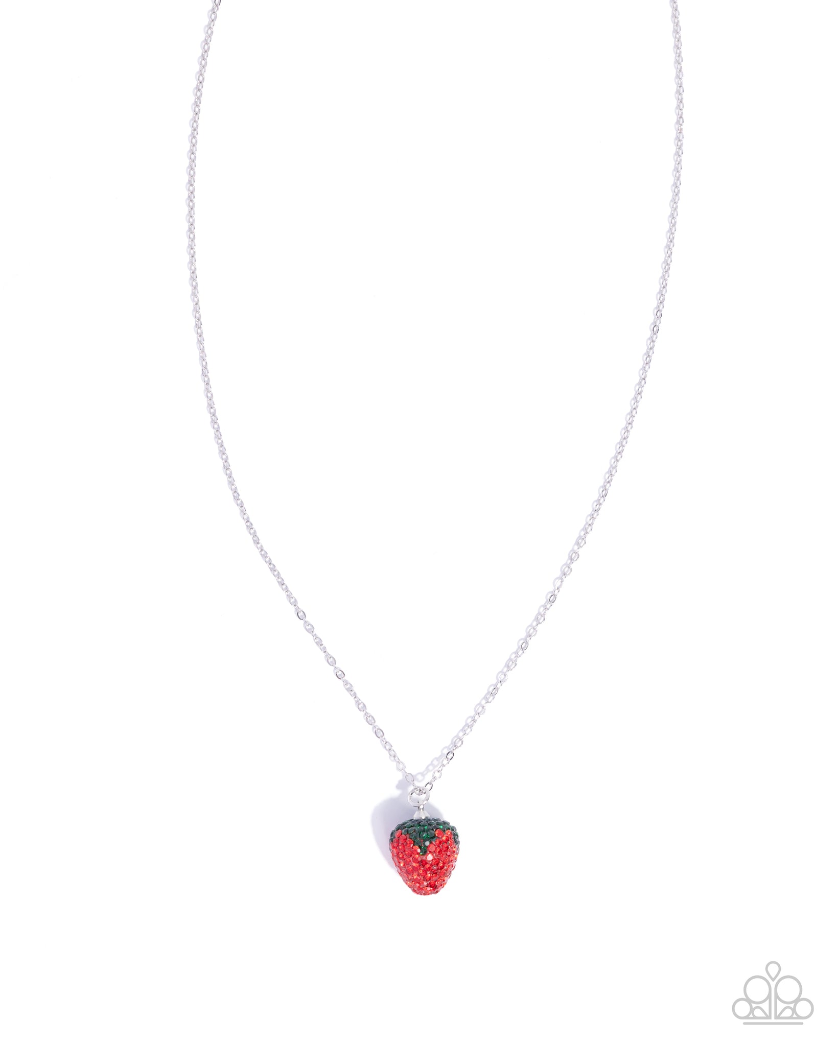 Embellished with its matching tone rhinestones, a dainty strawberry pendant, complete with a green stem, glides along a dainty silver chain below the neckline for a seasonal, shimmery display. Features an adjustable clasp closure.