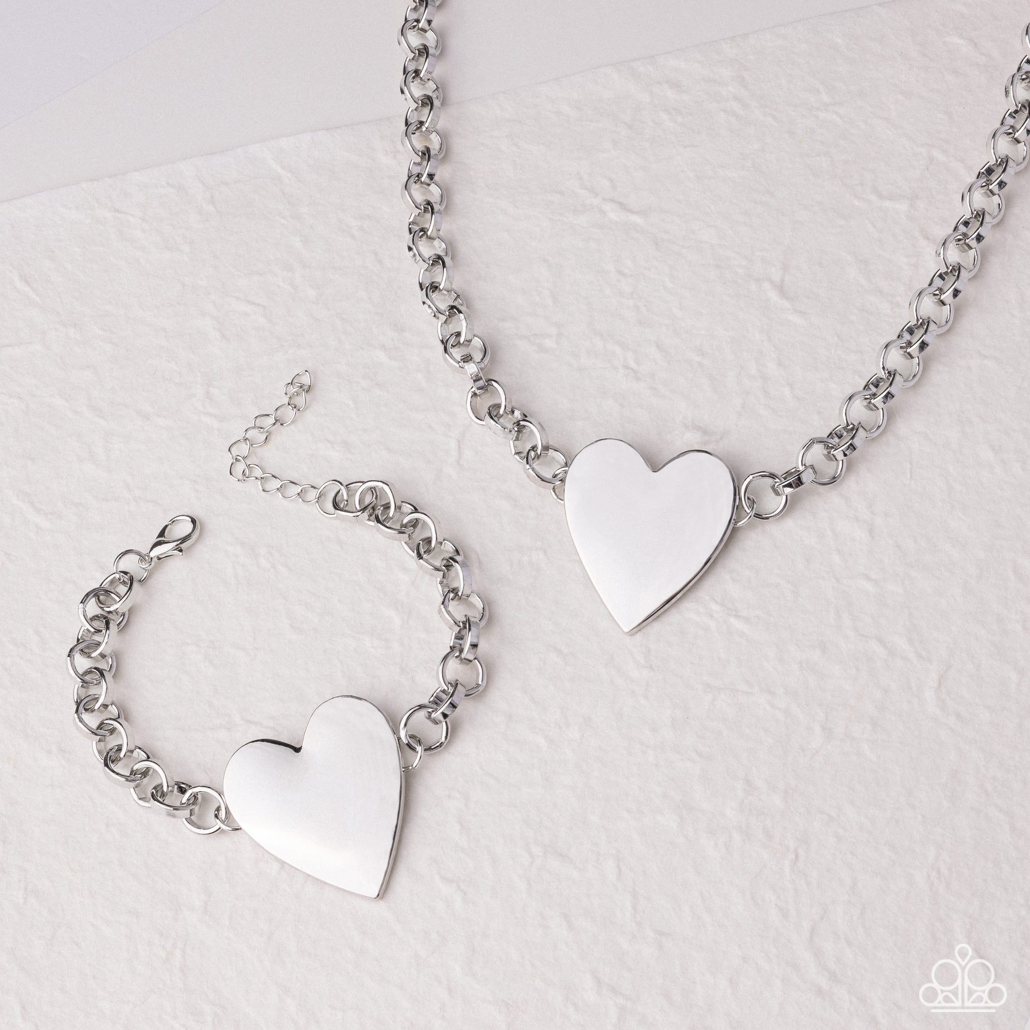 Featured in the center of an oversized thick silver cable chain, a silver heart stands out below the neckline for a radiantly romantic display. Features an adjustable clasp closure.