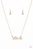 Encrusted in glassy white rhinestones, the word, "love," connects to a dainty gold chain, creating a flirty pendant below the collar. Features an adjustable clasp closure.