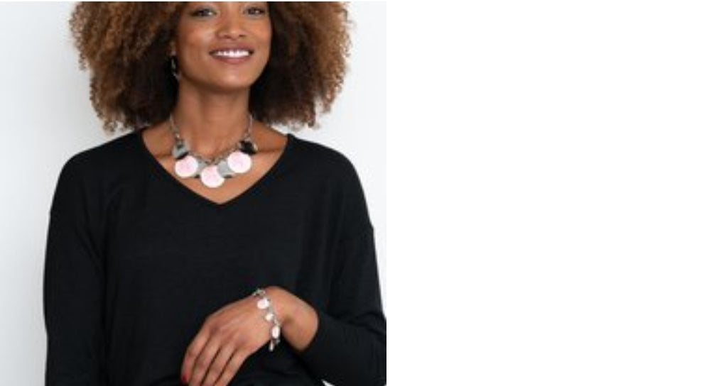 Featuring a galactic tie dye print, flat colorful discs swirled in tones of pink and yellow combine with curved silver discs, swinging from the bottom of a bulky silver chain for a trendy throwback look. Features an adjustable clasp closure.